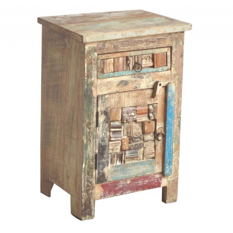 Wooden Bed Side In Multi Colour With Buddha Face panel In Drawer
