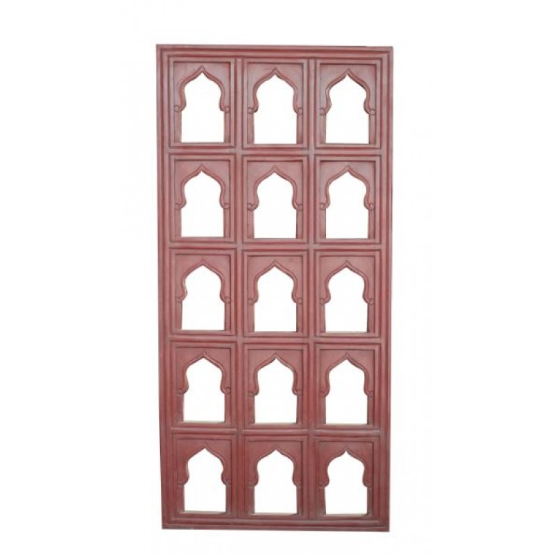 Wooden Jharokha Mirror Frame In Dark Red Colour Finish