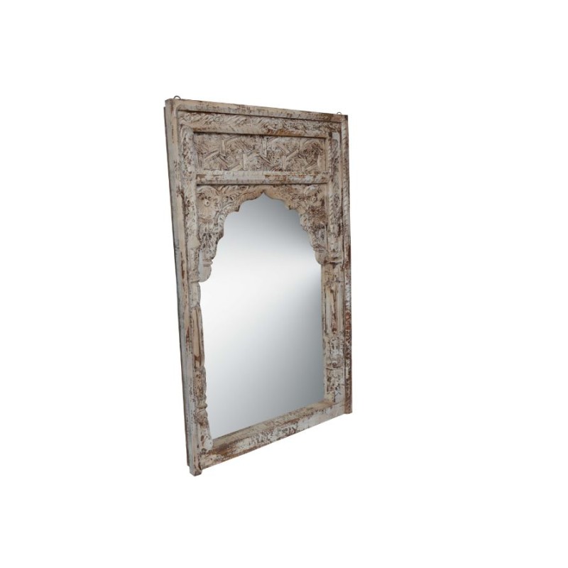 Wooden Mirror Frame In White Full Distress Natural Finish With Antique Look