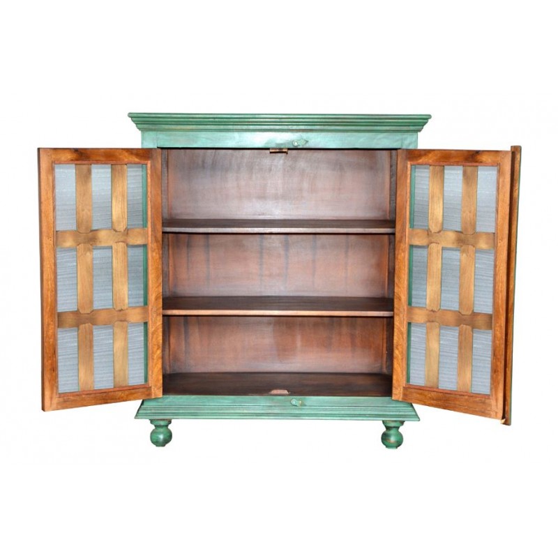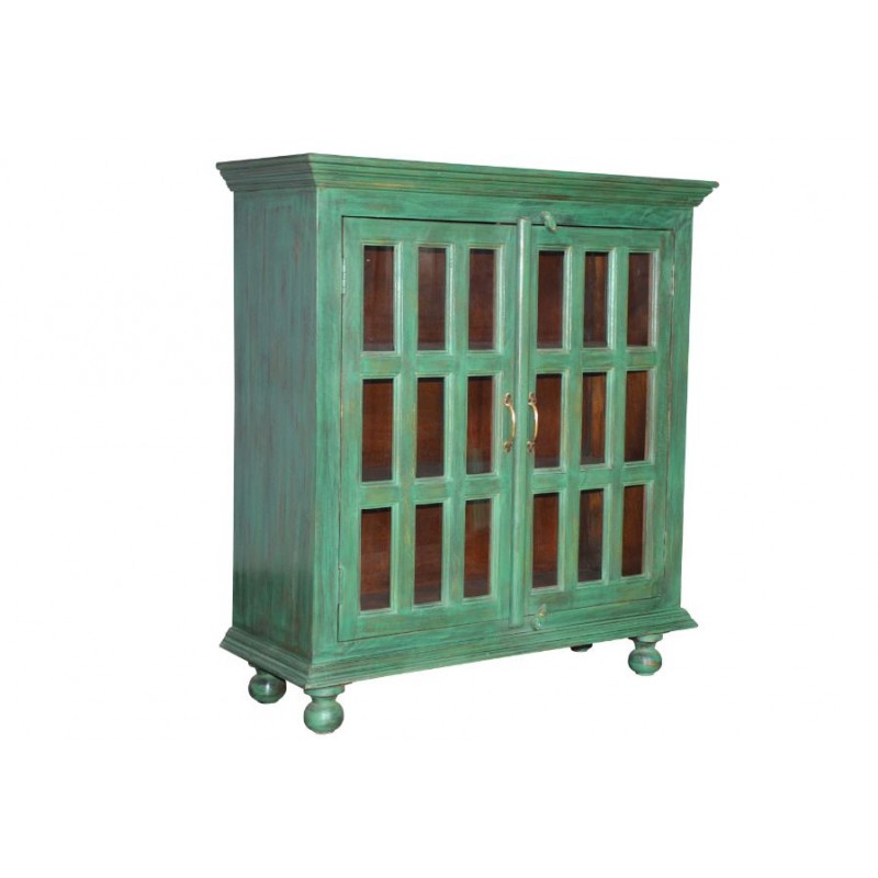 Wooden Cabinet In Green Distress Wax Antique Finish