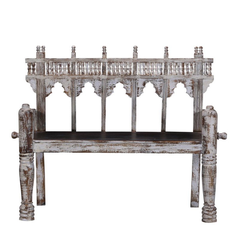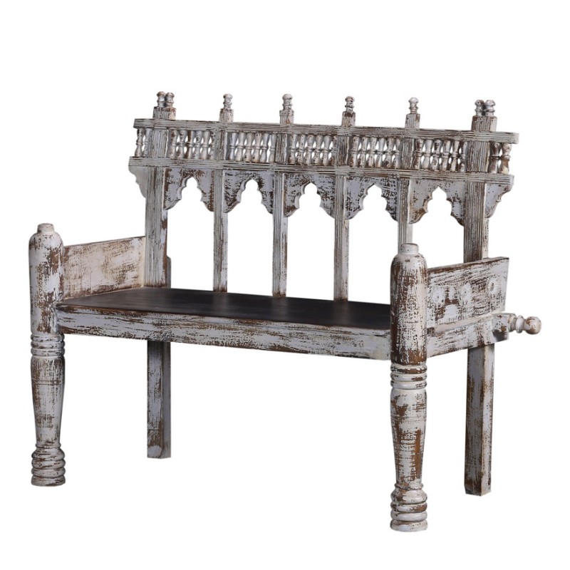 Wooden Bench In White Distress Finish