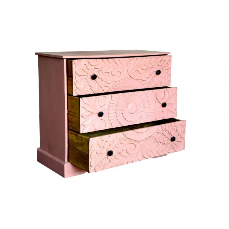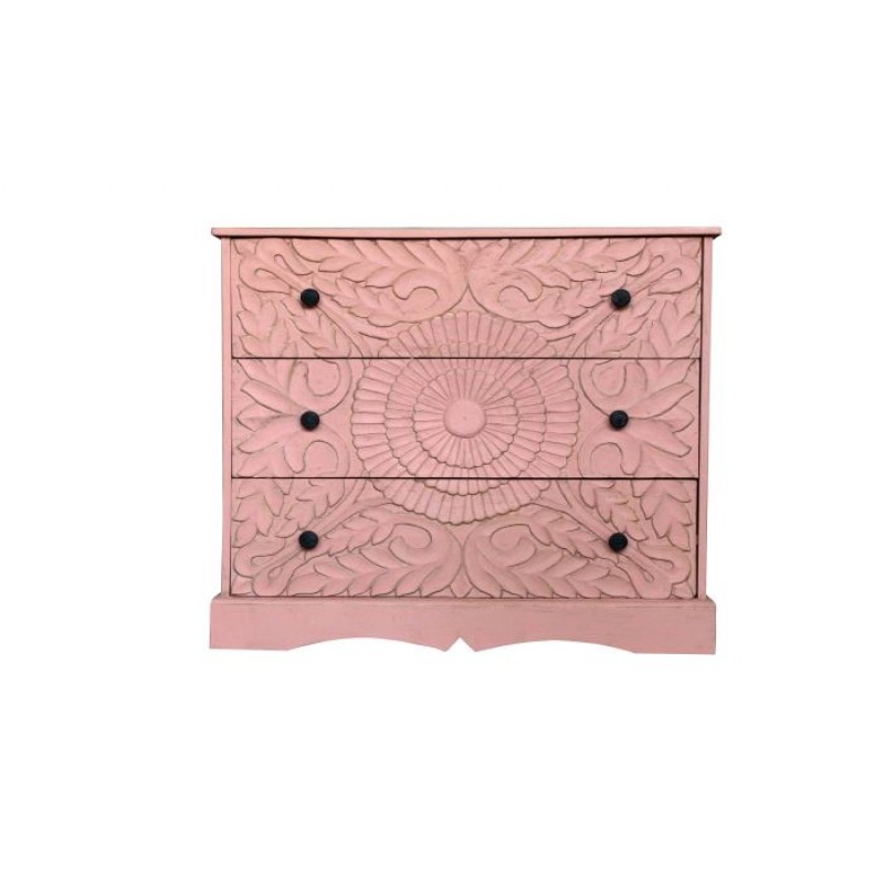 - Type :- Wooden Storage Drawer Chest In Light Pink Color With Carving